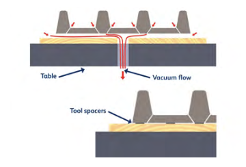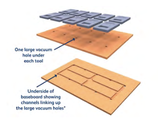 1. To allow the vacuum to flow through the vacuum holes in the tool across the base and then directly down the main vacuum hole in the table/baseboard.