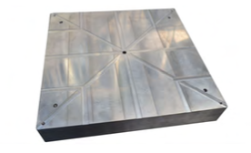Aluminium, resin or tooling board can also have small channels milled into the underside and then linked back to the main central vacuum hole in the base board. This means that the tool can be bolted down on to the baseboard without any air gap. This is useful for very thin material and the air flow will be much greater than drilling vacuum holes around the perimeter of the tool.