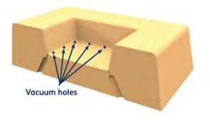 Vacuum holes or slots should be positioned at the lowest point in cavities or at changes in sections. Every corner requires a hole and they should generally be spaced 25mm (1”) apart.